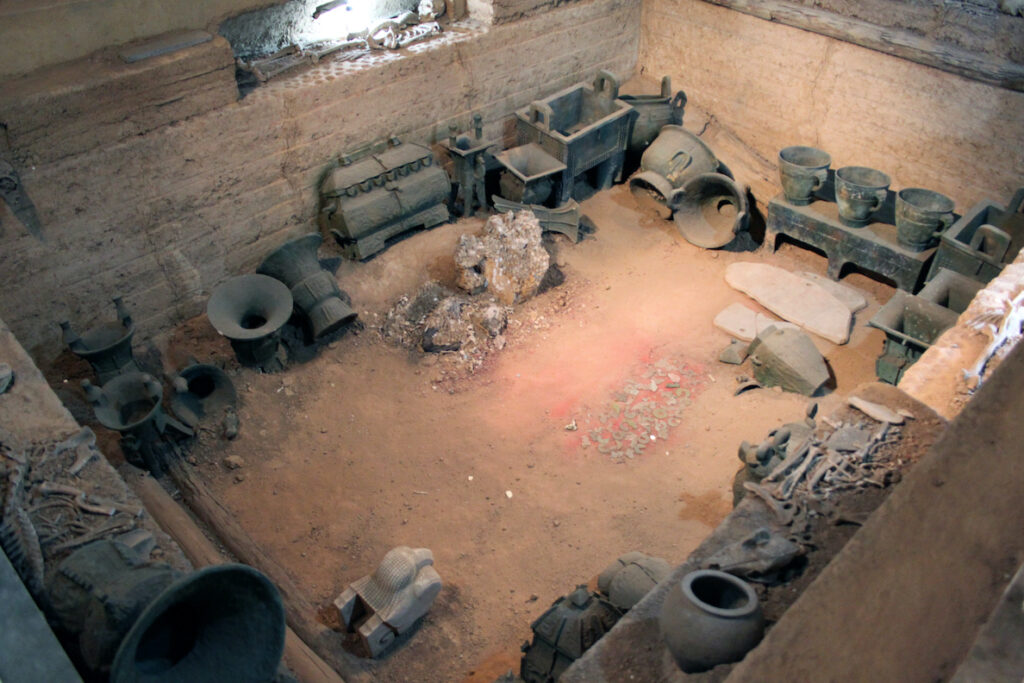 Among hundreds of bronze vessels, jade ornaments, and ivory carvings lay the skeletal remains of sixteen human attendants.