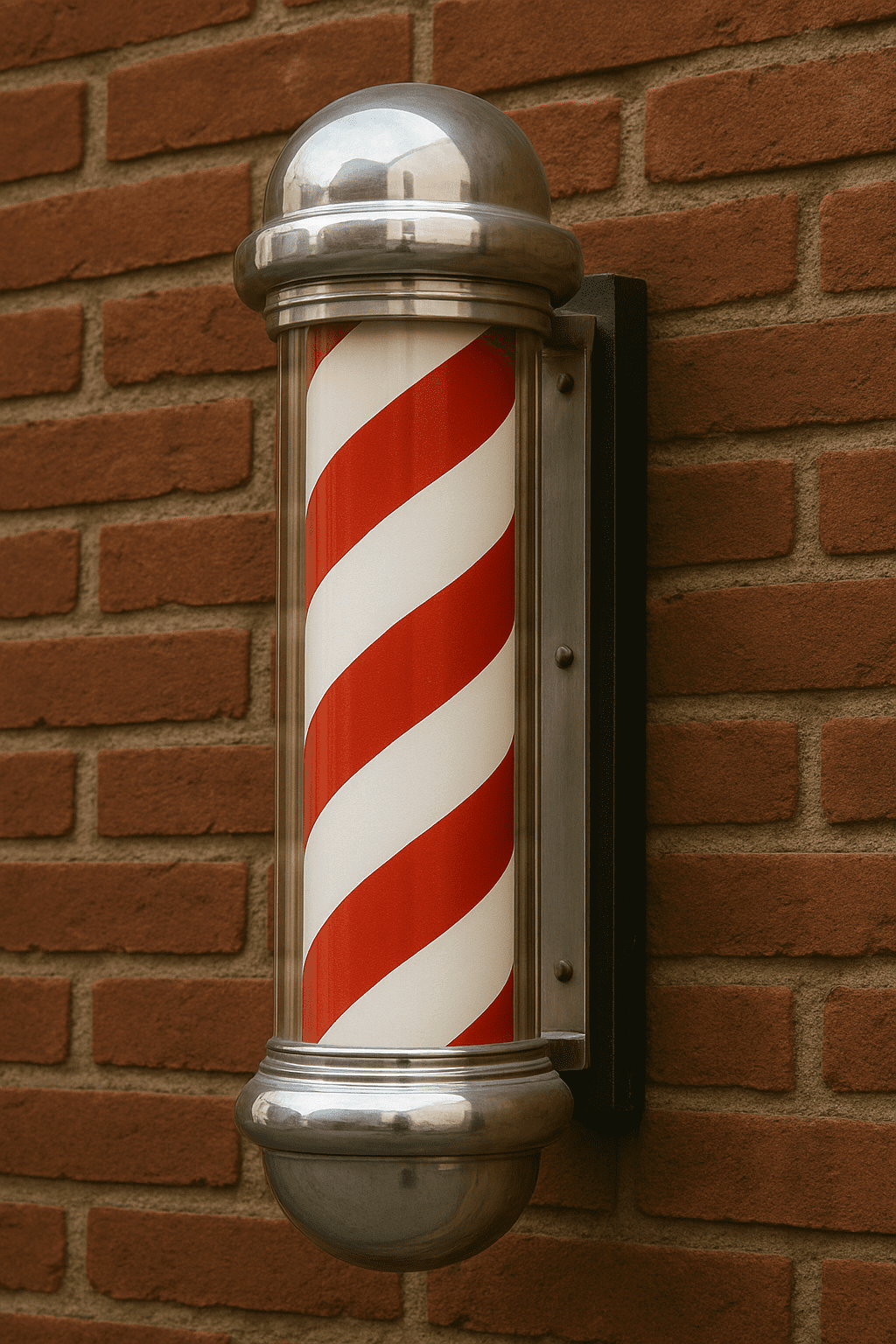 In America, the barber’s pole took on a new look. Immigrants brought the old symbol across the Atlantic, but a blue stripe was added, some say to represent veins, others as a patriotic nod to the flag’s colours. By the late nineteenth century, American towns were filled with bright red, white, and blue poles, spinning mechanically outside barbershops that now promised relaxation instead of surgery.